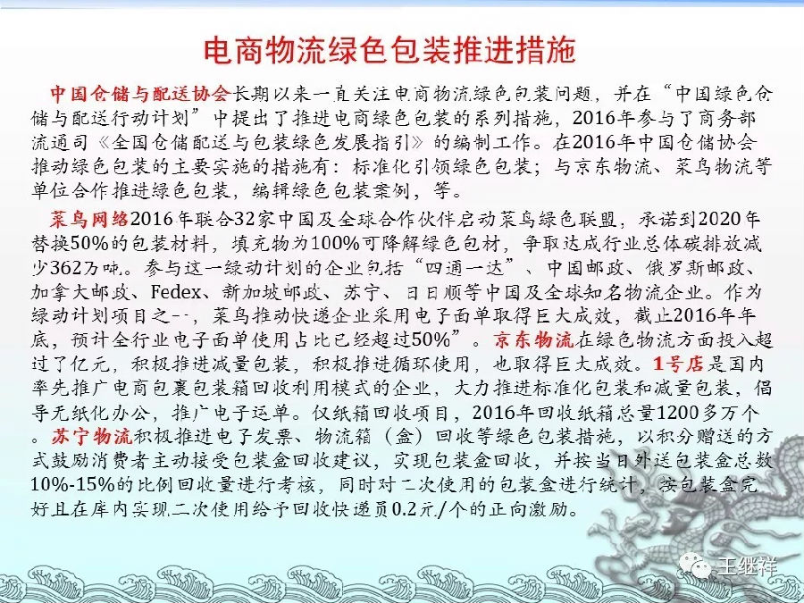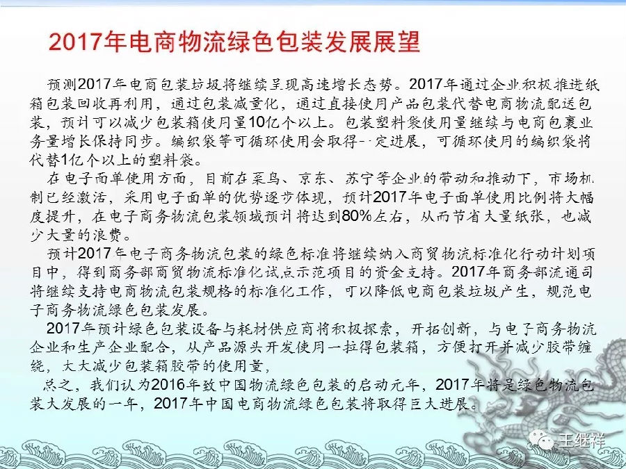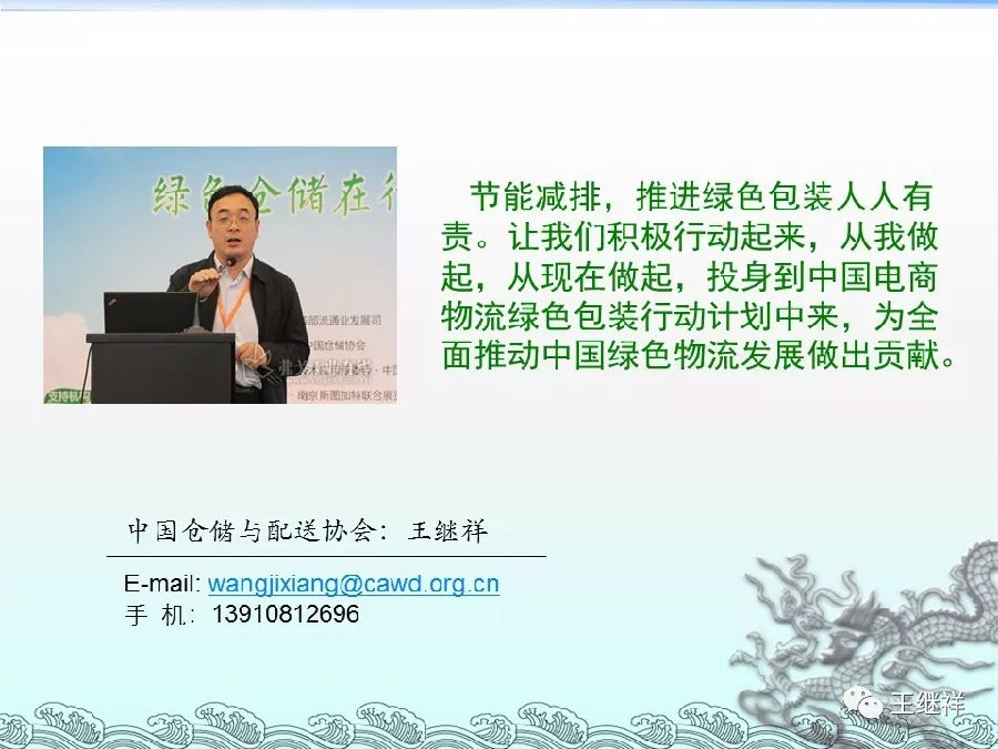 编者按:致力于绿色物流发展是我的夙愿,愿意无偿付出精力大力推进的事业,本篇是我2017年一个会议上关于绿色物流包装的演讲PPT,发布出来,请大家多提意见。