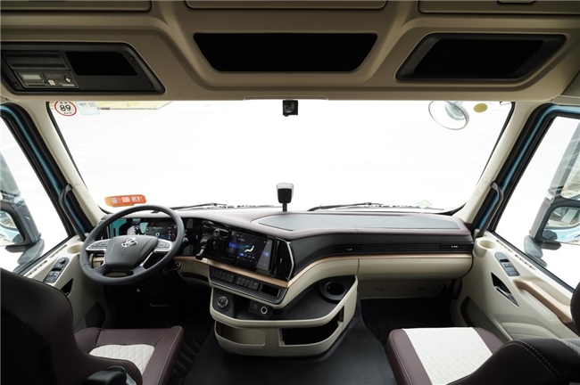 乘龙H7 Pro纯电牵引车采用宽体平地板驾驶室设计,大空间舒展自如,搭配气囊减震座椅,可长效缓解驾驶疲劳,大卧铺更为卡友提供了高品质休息环境,让每次出发都精力充沛。