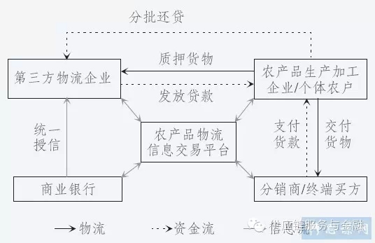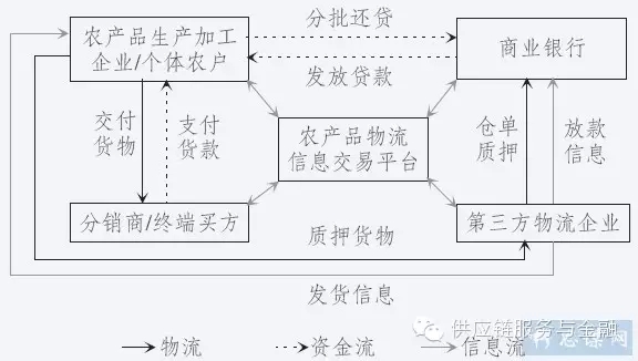 优化供应链现金流和双向信息流的解决方案,找出协同供应链金融流的新方法,供应链金融是:“一个由金融机构、第三方供应商、公司本身和技术平台所提供的贸易融资的组合,其中该技术平台通过电子的方式将贸易伙伴和金融机构连接起来,并提供以一个或几个供应链活动的发生为基础的融资触发器。”近年来,我国学者们也对供应链金融进行了研究。严广乐认为供应链金融为破解中小企业融资困境提供了一条新的选择路径,其研究运用博弈论和信息经济学的理论和方法构建了相应的博弈模型,分析比较了第三方物流企业参与供应链金融系统的两种融资模式。晏妮娜和孙宝文研究了在需求不确定环境下,供应链金融系统中受资金约束的零售商通过仓单质押融资的最优策略。李毅学认为供应链金融创新具有巨大的发展潜力,但其风险来源也非常复杂,并提出可将供应链金融的系统风险分为宏观与行业系统风险和供应链系统风险,将供应链金融的非系统风险分为信用风险、存货变现风险和操作风险。胡国晖和郑萌在对农业供应链金融的具体运作模式分析研究基础上,运用博弈论理论对农业供应链金融各参与方的收益分配机制进行了研究。王忠伟在其研究中提出:结合集体决策、定性分析与定量研究相结合的方法,可以有效识别和评估农产品物流金融业务过程中的各类风险。