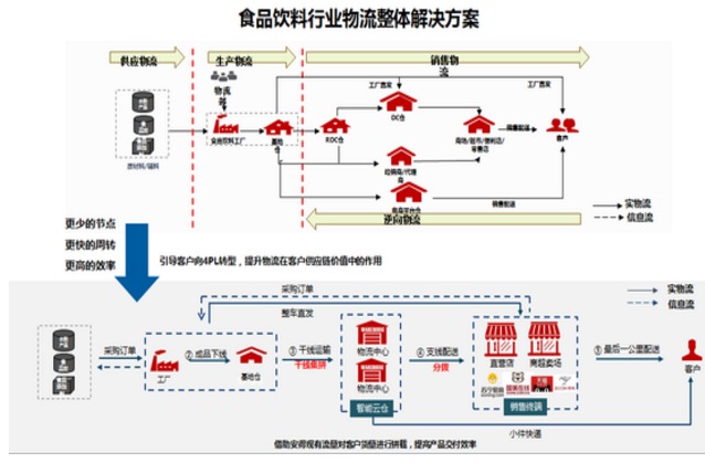 针对未来与食品饮料类似的快消品行业,就如何缩短运距、减少物流运输中间环节、降低库存等问题,生产商与物流企业将会被市场需要捆绑为一个利益共同体!