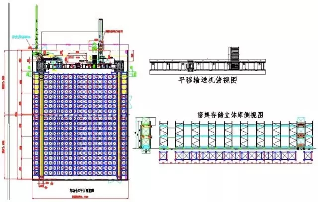 采用密集存储立体仓库。本库区共三层,每层左右端各一条穿梭车轨道,将立库划分为左中右三个库区。每层每个库区分别设计20个巷道,左右库区每个巷道1个货位,中间库区每个巷道18个货位,总货位数为1200个。
