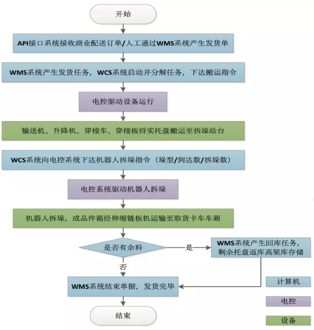 采用仓库管理系统WMS的智能辅助决策分析模块,结合实际库存量/合理库存量、立库空闲储位、生产工单、商业销售订单、物流能力等进行统计分析和数据挖掘,最终提供最为合理的出入库计划。通过数据接口系统API,在入库环节与MES信息集成,在出库环节与ERP或商业配送系统集成,以配合指导生产作业及销售运营,最终保证生产入库与销售出库的数量平衡。