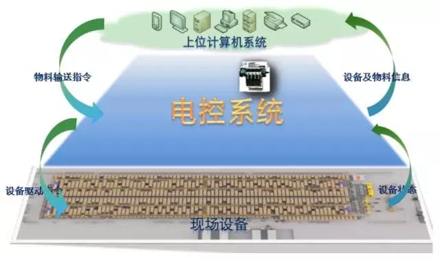 电控系统主要完成自动化物流系统中输送设备的控制任务。向上联接物流系统上位机及调度计算机,接受物料的输送指令;向下联接设备电机,实现底层设备的驱动、输送物料的检测与识别;完成物料输送的过程控制及物料跟踪。此外还提供内容丰富、形象直观的人机界面、安全保护措施和多种操作模式,辅助工作人员进行设备操作和维护。如图8。
