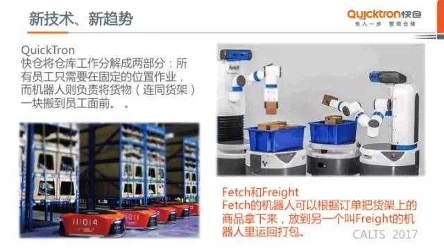 在7月27~28日召开的CALTS2017第九届中国鞋服行业供应链与物流技术研讨会暨第二届全国鞋服物流经理人互动场期间,来自上海快仓智能科技有限公司的产业总监冯峻先生带来了有关仓储机器人在服装仓储管理中的技术应用实践。他指出:仓储机器人并不是一个万能的设备,只有把它用在合适的节点和其他的自动化设备和人工进行合理的分工、合理的配合,才能发挥各个设备最大的效能。