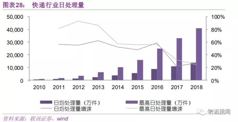 (一)快递行业最高日处理能力超过4亿件,业务量增速逐步放缓