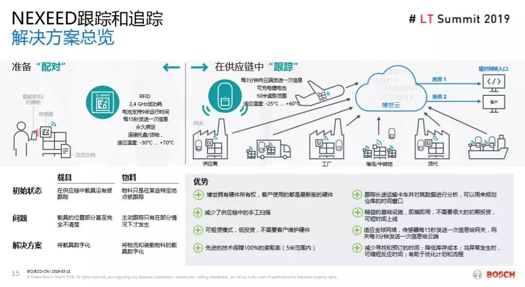 利用这样一些新的技术就可以帮我们便捷地运用一些追踪管理,同时还能把这些信息实时反馈到比如说我们原材料的计划里面,或者说我们的成品客户的计划源,他们知道我现在的原材料在哪,是哪个订单,这些就可以省掉他们不同地切换系统和看这样的信息。