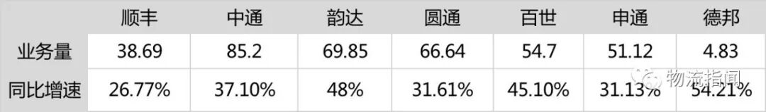韵达累计完成快递业务量69.85亿票,同比增长48%,增速高出行业平均增速22个百分点;占据快递市场份额已达13.77%,较去年同期提高2个百分点。