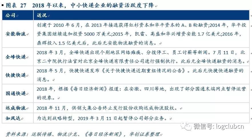 2013-2018年,CR8从80%先降至16年的76.7%,而后升至18年的81.2%,通达系整体市占率则由54.2%降至16年的49.3%,而后升至54%,两者的趋势相同,而16年开始出现集中度提升的拐点,一个重要因素是通达系在16年纷纷登陆资本市场,最晚的中通在2016年10月上市。