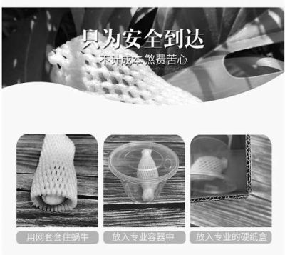 某专营蜗牛的网店,包装运输方式的介绍。