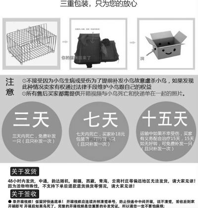 网店中介绍活体雏鸟的包装运输方式。