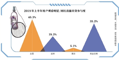 艾媒数据显示,2019年上半年,超五成直播平台用户观看过明星、网红电商直播,四成受访直播用户偶尔会选择购买推荐的产品。其中,衣物是直播平台用户最常购买的品类。