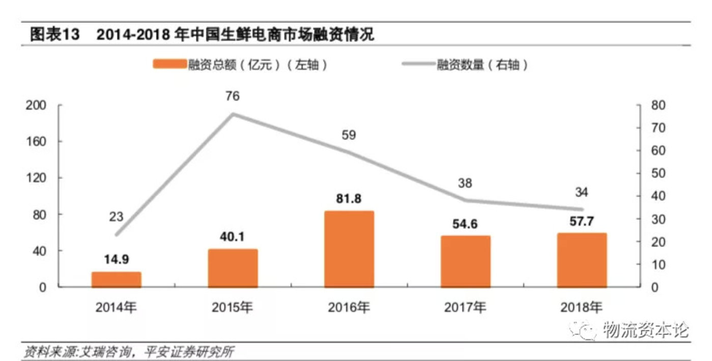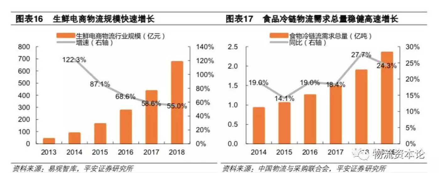 物流资本论分析师根据易观智库数据,生鲜电商物流行业近年来保持50%以上的年增长率,2013 年生鲜电商物流规模尚不足 40亿元,2018 年行业规模已达 674 亿元。