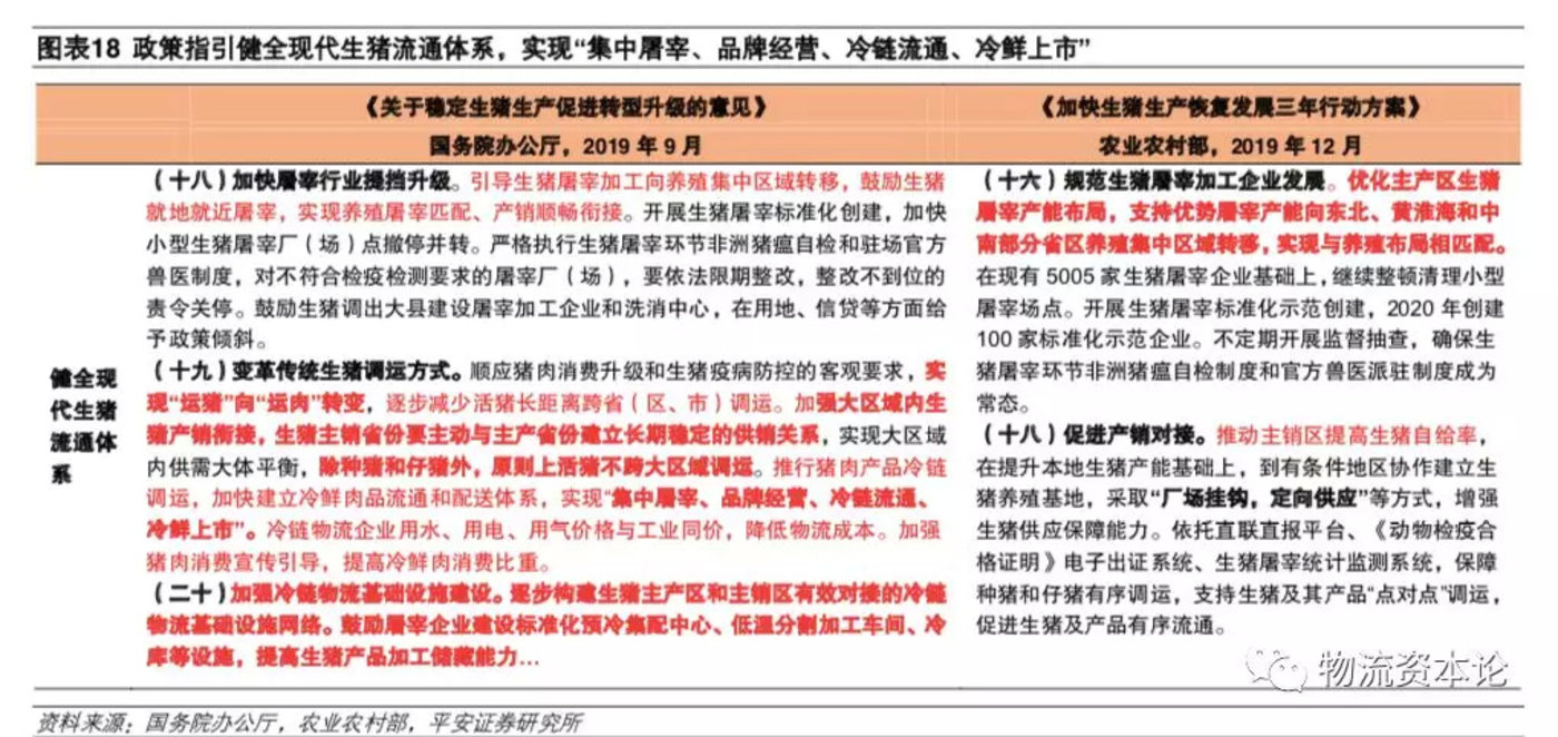 国务院办公厅2019年9月出台《关于稳定生猪生产促进转型升级的意见》, 提出“健全现代生猪流通体系”的重要任务: