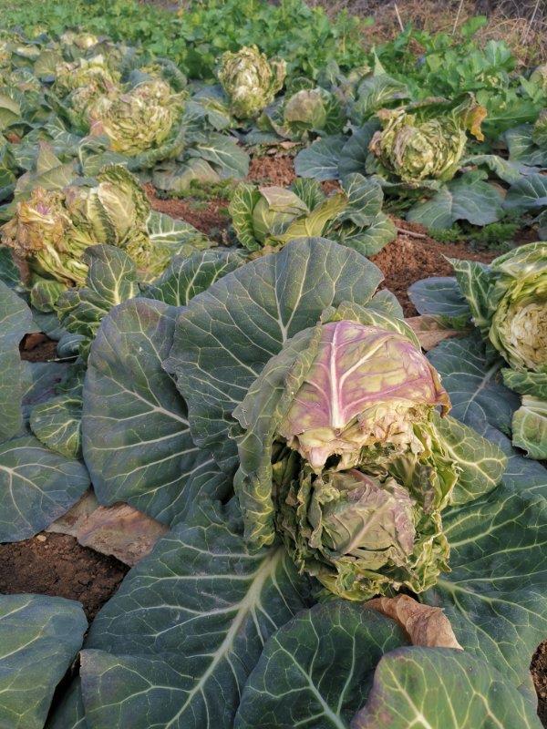 如今,部分长在地里的球包菜开始烂掉了。 受访者供图。
