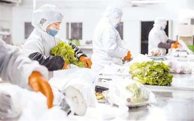 内蒙古呼和浩特市绿林源农业科技开发有限公司员工在分拣蔬菜。