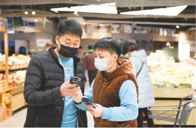 收到短信,家住北京朝阳的柯女士下了楼,不一会儿就拎了两袋子菜回来。“眼下都用APP买菜了,安全方便,买一次够吃两三天。”她说,除了买菜,还在线上订了肉、鸡蛋和水果,不出门咱也要讲究营养搭配。