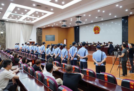 2019年2月19日,该案一审开庭审理,金坛区检察院派出4名员额检察官分别以公诉人和公益诉讼起诉人身份出席庭审。庭审历时5个多小时,刑事和民事交叉进行,检察官运用多媒体示证,充分展示大量书证、电子证据,有力回应被告人律师的辩护意见,请求法院依法判令21名被告人在省级媒体公开赔礼道歉,承担非法收购、出售穿山甲造成的生态资源受损费用合计88万元、专家咨询费1万元。