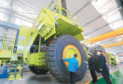 3月6日,包头海关工作人员对内蒙古北方重型汽车股份有限公司生产非公路自卸车所需的进口设备零部件实施“嵌入式查验”,实现“零等待”通关验放。 李 强摄(人民视觉)