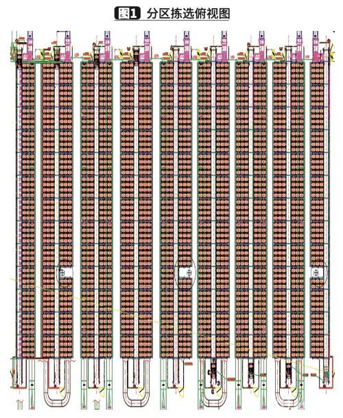 拆零快流拣选是解决出货量大,品规少的拣选任务。在该项目中采用分区拣选作业完成拆零快流分拣。分区作业拣选的布局设计如图1、图2。