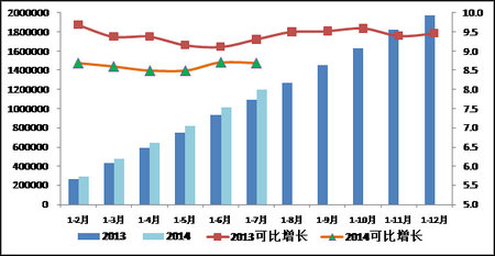 1-7月份,全国社会物流总额119.4万亿元,按可比价格计算,增长8.7%,增速与上半年持平,比一季度回升0.1个百分点。二季度以来,物流运行整体上呈现趋稳走势,其中,二季度好于一季度,7月份延续了平稳发展态势。