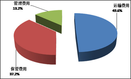 从各项费用的占比来看,运输费用占物流总费用的49.6%;保管费用占物流总费用的37.2%;管理费用占物流总费用的13.2%。