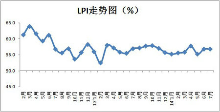 7月份,中国物流业景气指数(LPI)为56.8%,比上月回升0.1个百分点。设备利用率指数、库存周转次数指数、从业人员指数均有不同程度的回升。分行业来看,交通运输部的数据显示,1-7月份,我国货运量走势总体趋稳,其中,水运货运量增速有所回升、铁路货运量降幅收窄。