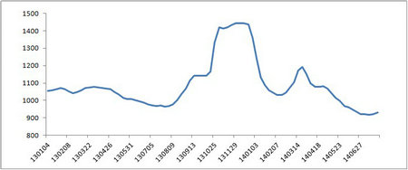图3:2013年以来中国沿海散货运价综合指数走势变化