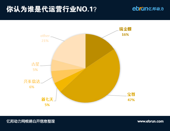 在日前进行的一份调查问卷中,涉及到谁才是国内电商代运营NO.1的问题,有接近一半的参与者将选票投给了宝尊。除了排名第二的瑞金麟票数偏多外,其他几家代运营公司不相伯仲。