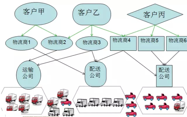 我们有各种各样的客户,每一种客户有各种各样的需求,这就是客户的个性化。不管是京东、顺丰,还是一些大的货主、第三方和制造业主,实际上它的运输需求个性化都非常严重,不可能让它的系统去跟别的系统完全对接,它在选取承运商的时候也会根据自己业务特点选择自己的承运商,是这么一个比较复杂的关系。承运商也会选择一些做城配的公司做下家,这种选择的过程是市场在做资源整合的过程。在运输公司和城配物流公司里面,大部分会拥有一些自己的车辆,但是因为司机都是个体司机,还存在大量的社会闲散资源,我们发现这些资源如果被业务整合起来,是需要有一个平台整合的,最终服务底下这些用户。
