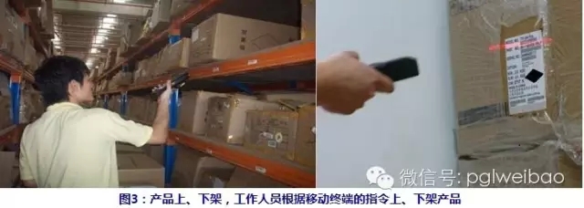 产品出、入库:产品入库时,利用移动数据终端扫描条码,即可在终端上获知该批产品应当存放的库位,并按指示入库;产品出库时,工作人员再次用移动终端扫描已分堆好的产品条码,与出货单据上的条码进行核对,确认无误后即可出货。