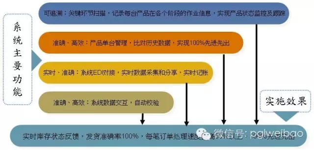 宝供采用了基于条码的仓储管理系统(WMS系统)和RF技术已成功在家电物流中得以应用。通过在WMS系统中将作业进行规范化,标准化,利用条码,在关键环节建立扫描点,结合RF技术,扫描各环节信息,并与后台数据进行交互、检验,实现全程数据实时采集、分享。以达到解决家电成品物流过程中面临的准确率、实时性、高效性、可追溯性等要求,实现家电成品物流环节的单品管理。