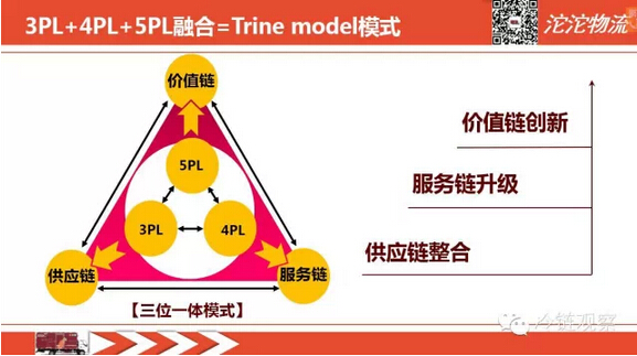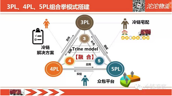 “在未来物流4.0时代,单一模式已经无法实现B端客户的需求,一定是通过3PL、4PL及5PL三种概念融合所形成的Trine Model的冷链B2C供应链解决模式,它将实现的是一个供应链的整合,服务链的升级以及价值链的创新。”