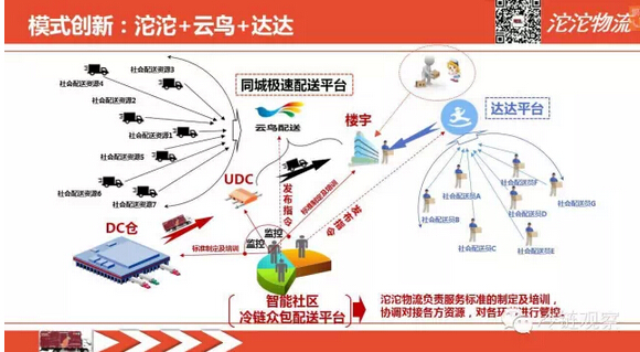 为了更好地让与会者了解Trine Model模式,刘宇以沱沱工社近期的市场营销活动“承包整栋楼”为案例进行解读,这个活动是通过消费者众筹模式,在很短时间内,在北京市内上千栋写字楼里聚集产生大量的活动订单,如何满足活动推广产生的订单激增峰值,如何实现楼宇个性化的配送需求,沱沱工社的解决方案是携手云鸟、达达这两家众包模式配送平台,以沱沱物流为主导,利用云鸟的社会化车辆作为移动SDC站点,利用达达的海量社会化配送员资源解决最后100米,沱沱物流负责服务标准的制定及输出,协调对接各方资源,对各环节进行管控,确保终端消费者的体验。