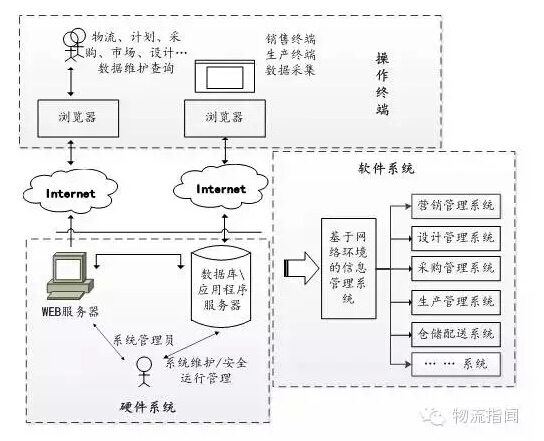 网络技术使信息分享变得实时、可靠且费用低廉。通过销售终端系统(POS)、射频识别标签、条形码扫描器和自动识别的应用,信息可以直接从源头获取。基于互联网技术的管理信息系统模型分操作系统、软件系统和操作系统三部分(如图三)。