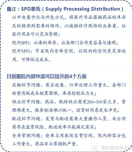 一般而言,世界的医疗机构都是封闭的白色巨塔,医药材的使用事关巨大利益,医疗更是事关生命,造成谁也不敢碰触的独特封闭环境;各自的医药材各自采购,医药材价格是秘密,各自管理各自配送,各自的库存信息是封闭的,无法流通,这让医药材的供应链无法实现共同采购共同物流,严重落后于现代流通业。所幸的是,从国际药品认证合作组织PIC/S(Pharmaceutical Inspection Convention andPharmaceutical Inspection Co-operation Scheme)与先进国家医疗供应链转变来的刺激,加上社会环境的变化,医疗院所间竞争激烈,医疗院所必须追求效益,让医院导入SPD成为趋势。