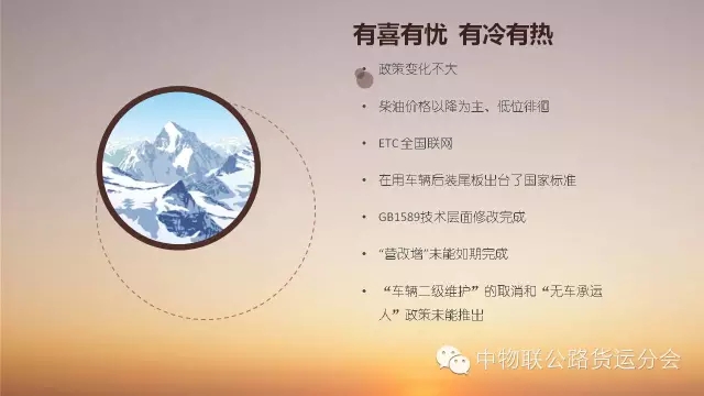 从公路货运的外部环境来看,政策变化不大,尤其是利好行业的种种政策因各种原因未能如期推出,留下了一些遗憾。