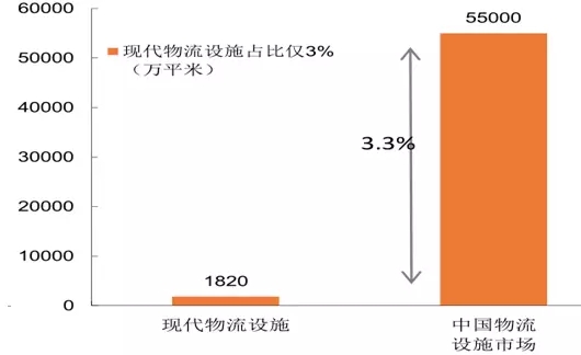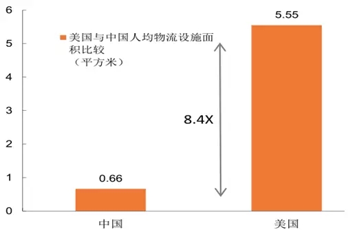 物流地产为经营专业现代化的物流设施的载体, 是房地产开发企业对利润的追求, 根据物流企业客户需要,选择一个合适的地点,投资和建设企业业务发展所需的现代物流设施。目前我国人均物流设施面积仅为美国的八分之一,其中现代物流设施占比仅 3%。未来伴随零售消费升级、电商快速发展,物流地产潜在发展空间广阔。