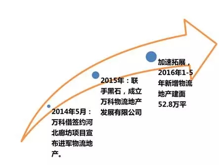 2014 年 5 月,万科借签约河北廊坊项目宣布进军物流地产,2015 年联手黑石,成立万科物流地产发展有限公司, 引入黑石为物流地产注入金融元素, 便于利用基金等手段实现物流地产运营的轻资产化。2016 年 1-5 月,万科新增物流地产项目 7 个,对应建面 52.8 万平米,超过 2015 年全年水平。