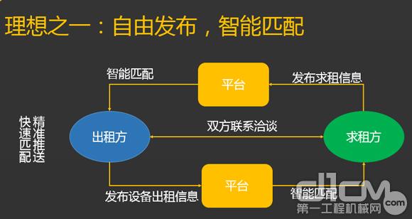 构建智能物联的设备共享平,是我们最终的愿景。严格来说,整体期望并不仅仅是租赁,我们希望实现这样的模式——无论需求什么样的服务,当你有服务需求时通过我们平台提出来,然后平台会帮你找到能解决你问题的方法,能让你买到能干活的设备,而且是以非常合理的价格、非常高效的效率。另外,对于持有设备的人,同样会让你的设备在平台上以更快的速度流转。