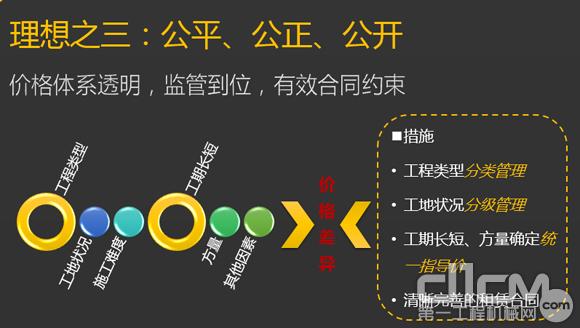 我们希望交易脱媒。我们三一物联网平台和传统中介平台、中间信息服务商最大的区别是不收取交易费。在我们的平台上,所有交易用户可以直接对接,我们既不收取费用,也不会在中间赚取差价。那我们生意怎么做?不过是希望建立起公平、公正、公开的交易体系,能够对工程情况进行整体分类和管理,而且会提供清晰、统一的、合法的、合规的合同。我们希望能够实现招之既来、来之能的服务。这里要强调一下 “来之能战”,因为搞定设备只是万里长征的第一步,使用过程中对设备、人员的管理以及结款,我们希望能在所有环节上给客户提供一切的帮助。