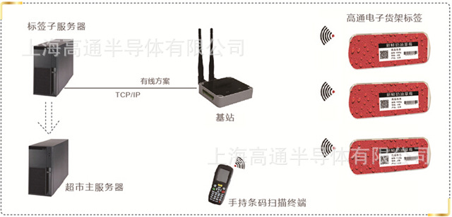 在货架上安装电子显示标签,可替代传统纸质价格标签,每一个电子货架标签通过有线或者无线网