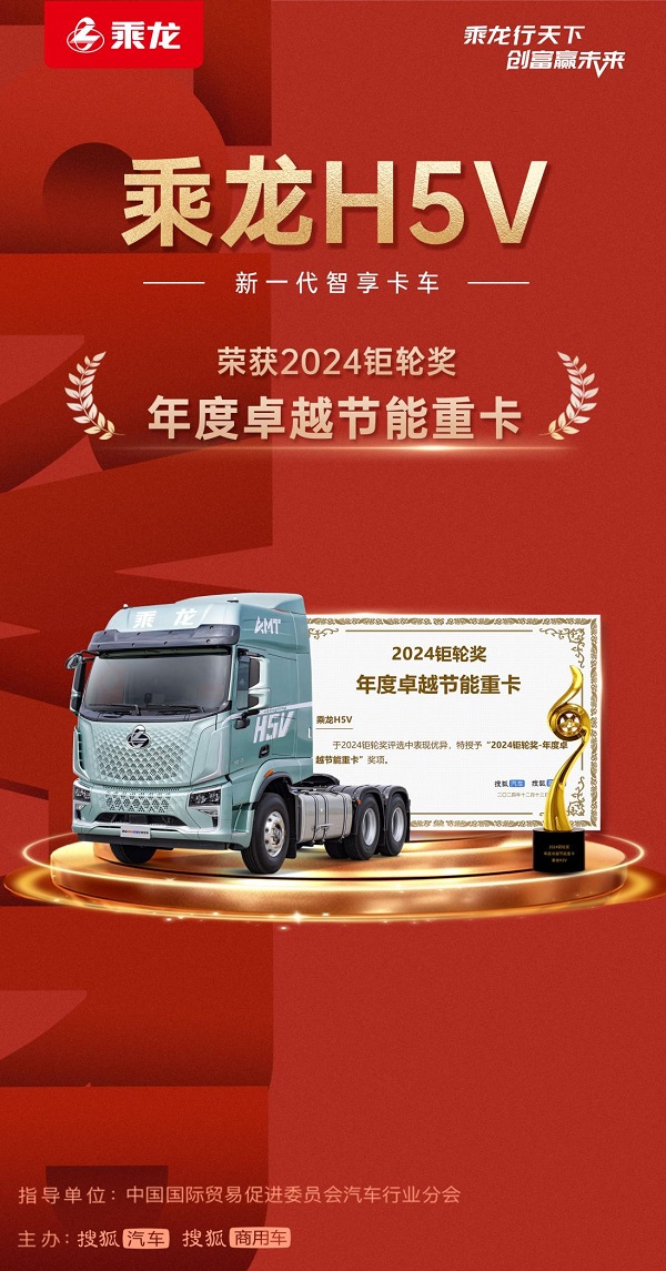 每一份荣誉都是企业砥砺前行、精研深耕的有力见证。2024年12月13日,东风柳汽乘龙携实力车型乘龙H5V,在备受瞩目的钜轮奖评选中突出重围,一举拿下“2024钜轮奖・年度卓越节能重卡”的殊荣,成为全场焦点。